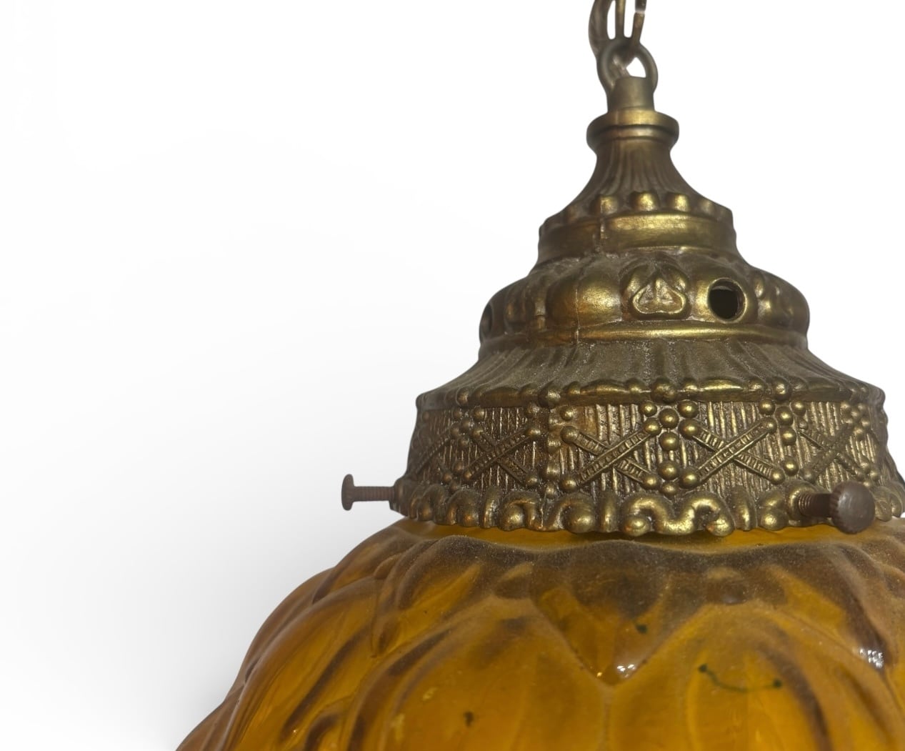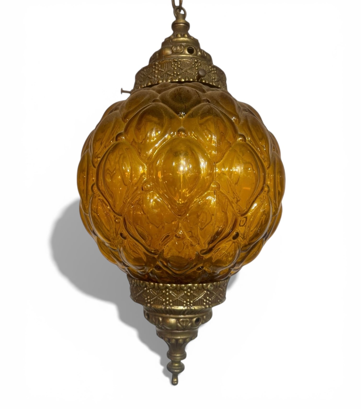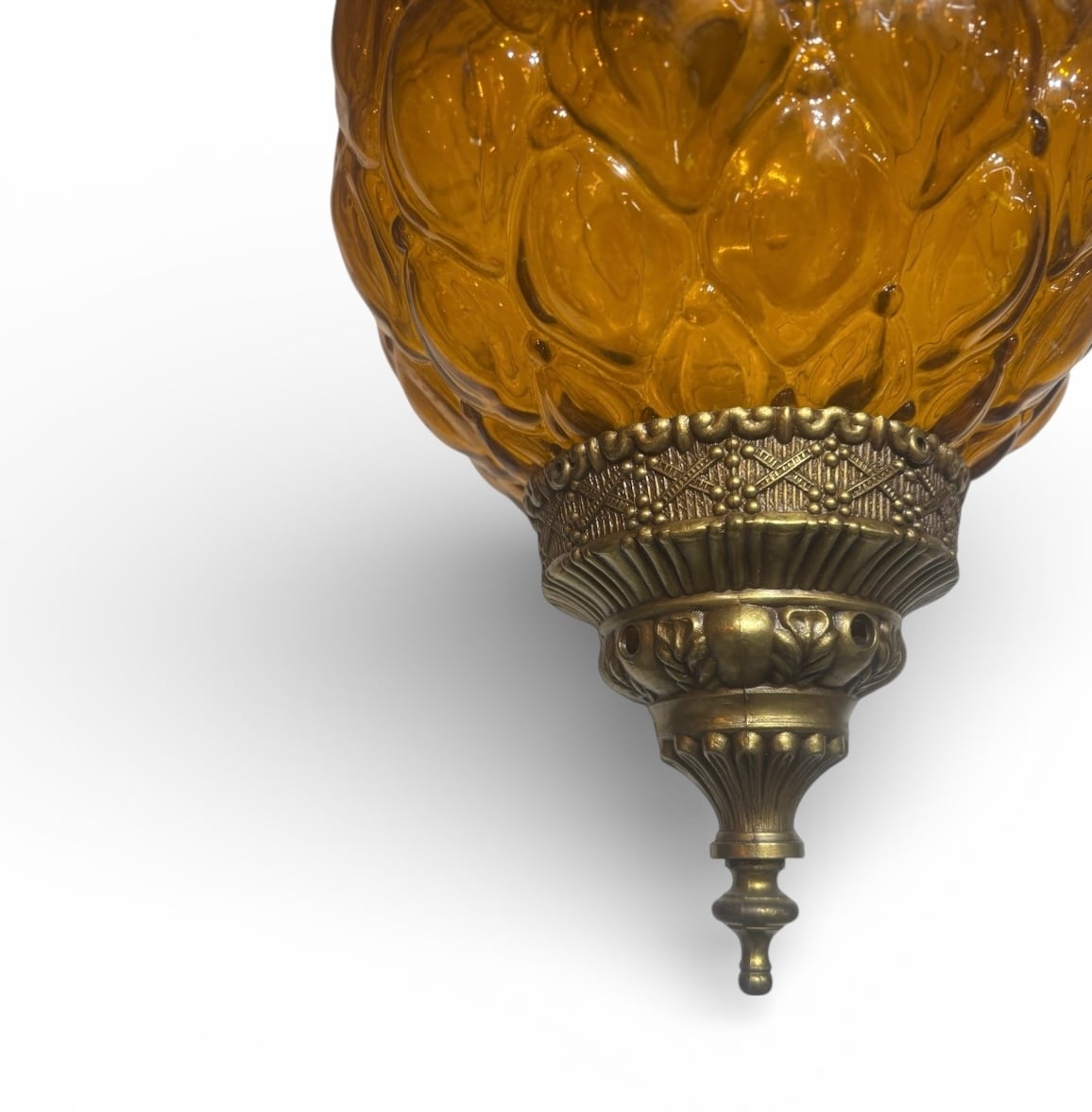 アメリカにて買い付けたアンバーガラスのペンダントライトです。